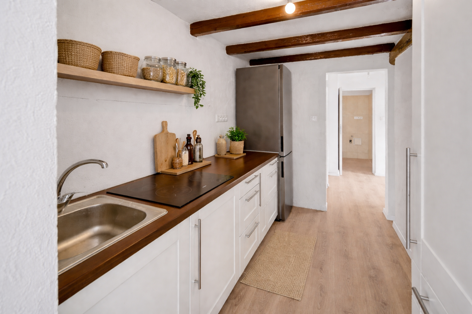 Dom prešiel kompletnou rekonštrukciou interiéru a aktuálne ponúka tri samostatné izby, ktoré poskytujú dostatok priestoru pre rodinu aj návštevy. Stačí ho už len dozariadiť podľa vlastných predstáv.